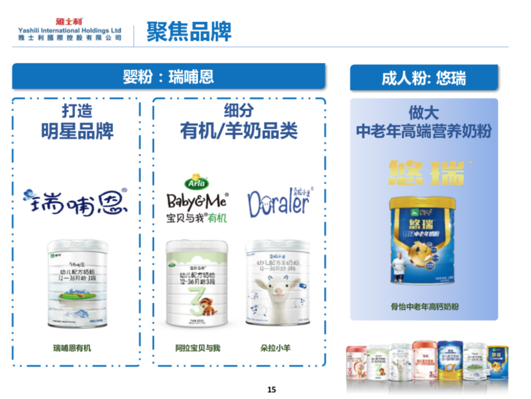 其次,雅士利在成人粉业务上将聚焦于悠瑞品牌。“我们要扩大在中老年高端营养奶粉市场的份额。因为成人粉的毛利比婴儿粉相对还是低一点,所以我们要做到有质量的增长。”他说。