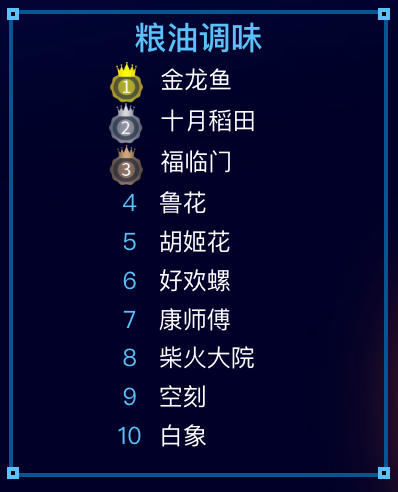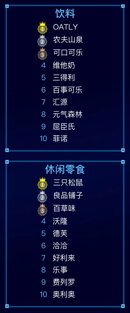 星图数据:双十一统计期内食品饮料品类榜单