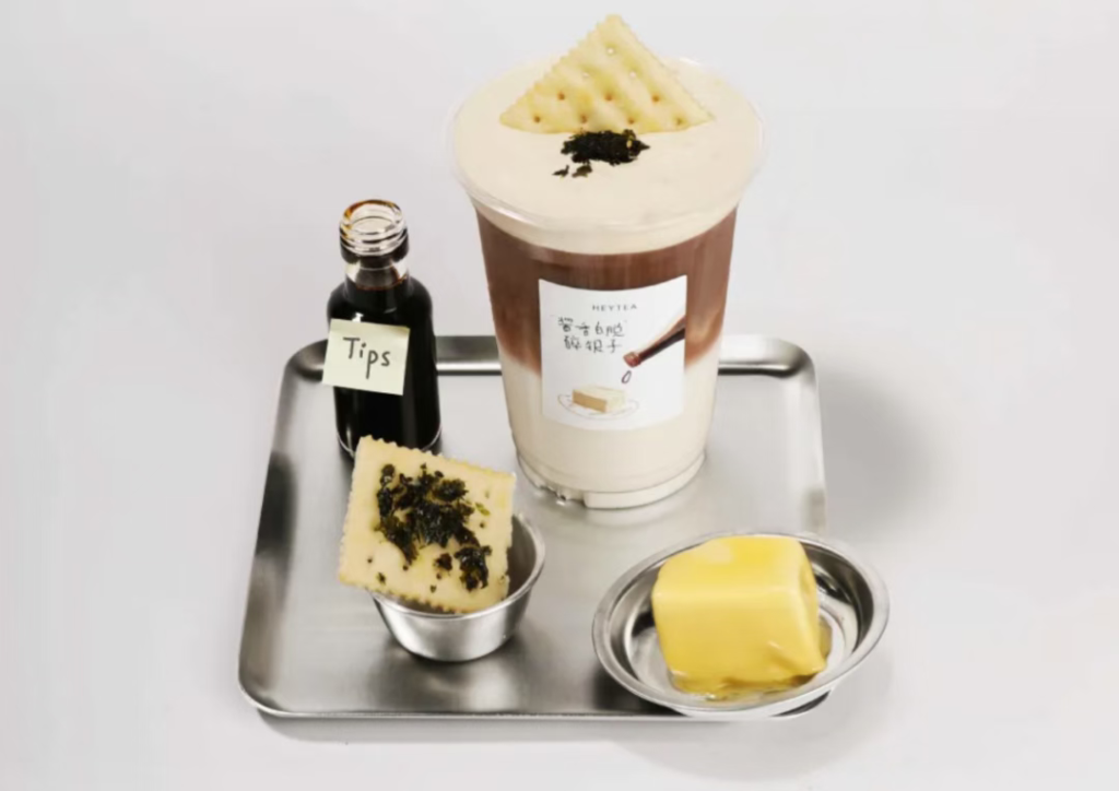 小食代从喜茶了解到,这次新品延续了对茶的灵感,在采用云南传统普洱与红河州糯米香叶拼配的基础上,将云南甜酱油与黄油牛乳一同打入芝芝云顶,试图打造有着酱香、咸甜交织的口感。