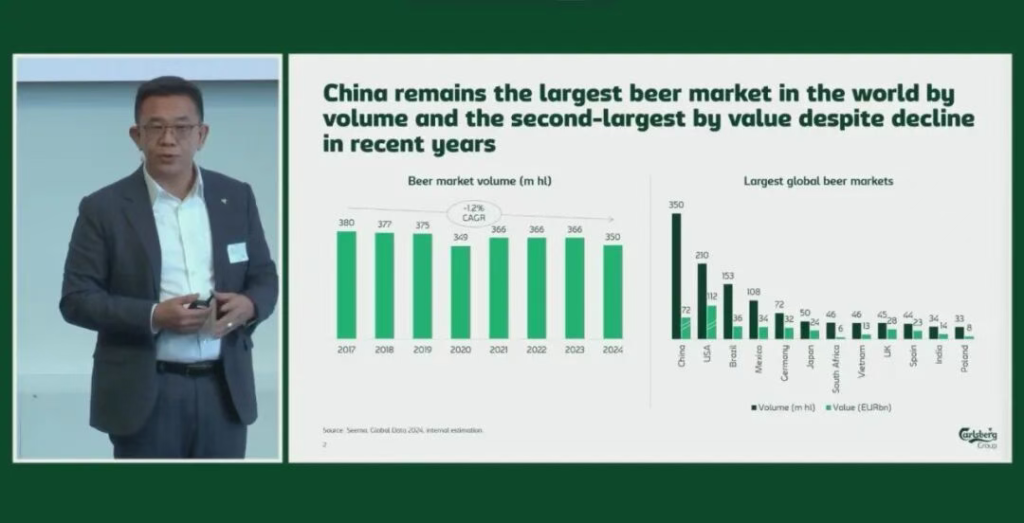 首先,他表示,过去十年间中国中产阶层及以上人群规模不断扩大,据预测,到2030年这一人群的占比将达到约6%。尽管当前市场受到消费者信心不足的短期影响,但长期来看,中国啤酒市场的整体前景向好发展。