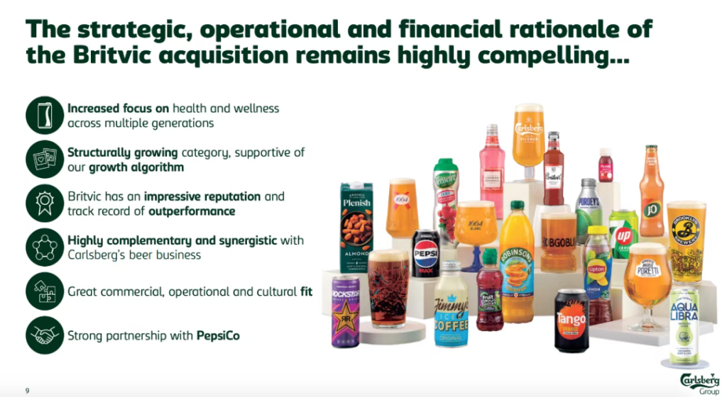“对Britvic的收购,必须说明的是,目前的初步成果令人鼓舞。目前整合工作已顺利推进超过8个月,整合效果远超预期。”雅各布说。正因如此,嘉士伯上调了对此次收购的协同效应的预期。