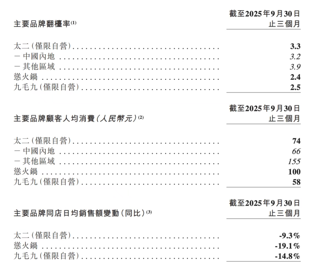 今天,九毛九集团公告称,三季度太二及九毛九的同店日均销售额同比降幅持续收窄。其中,太二的同店日均销售额同比已连续三个季度持续改善。截至目前,太二位于中国内地已落地的“5.0鲜活模式”餐厅数量达106家。公司又表示,新模型餐厅自推出以来反响良好,因此将于第四季度加快推广步伐,预计截至2025年底新模型餐厅落地数量将提升至200家以上。(公司公告)
