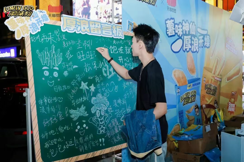 无论是课间途经时的随手购买,还是宿舍囤货的计划性消费,浪味仙原薯厚切系列都能自然融入学生的日常动线。配合天猫校园线下快闪活动与超星学习通等平台的线上互动,品牌在学生心智中逐步建立认知,有效促成从“眼熟”到“购买”的决策转化。