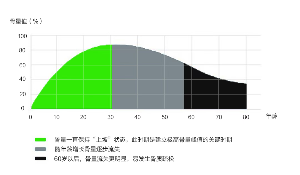 由于膳食结构等方面的原因,我国居民的缺钙现象值得关注。研究显示,中国97.2%的人每日钙摄入不足,每个年龄段人群的钙缺口在300-600毫克之间,尤其要注意40岁这一年龄红线。40岁以后,人体面临骨量和骨胶原的双重流失,长期维持骨骼健康不仅依赖骨密度或骨强度,还取决于骨韧性。