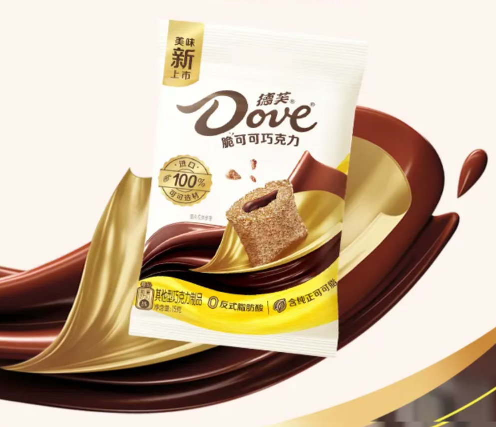日前,德芙发布新品“德芙脆可可巧克力”。据称,新品以酥脆非油炸谷物外壳包裹牛奶巧克力,具有丰富口感。(公司发布)