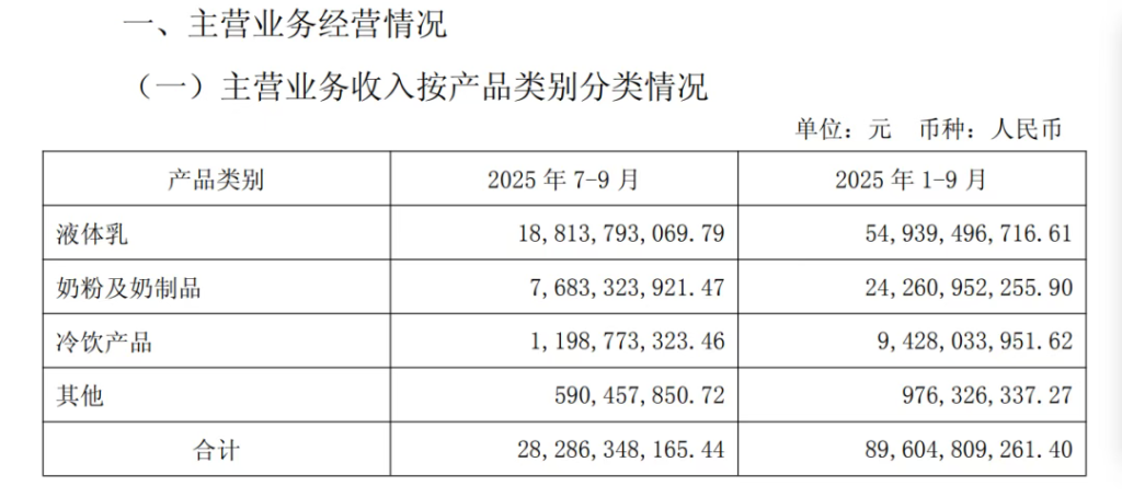 今天,伊利股份公告,第三季度营收为285.64亿元,同比下降1.63%;归母净利润为32.26亿元,同比下降3.35%。前三季度营收为903.41亿元,同比增长1.81%;归母净利润为104.26亿元,同比下降4.07%。(公司公告)