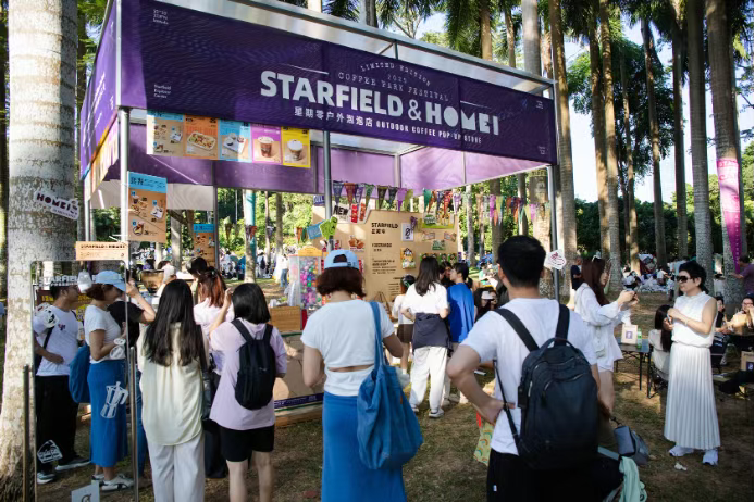 日前,星期零泡泡店登陆深圳莲花山公园咖啡节。此次星期零携手咖啡品牌HOMEI COFFEE共同在咖啡节亮相。在咖啡节活动现场,不仅可以品尝HOMEI COFFEE的经典和特调咖啡,还能享用特别推出的“咖啡+酥炸鸡蛋豆腐”限定套餐,以及搭配两款特制风味酱料的烤蔬豆腐盒。(公司发布)