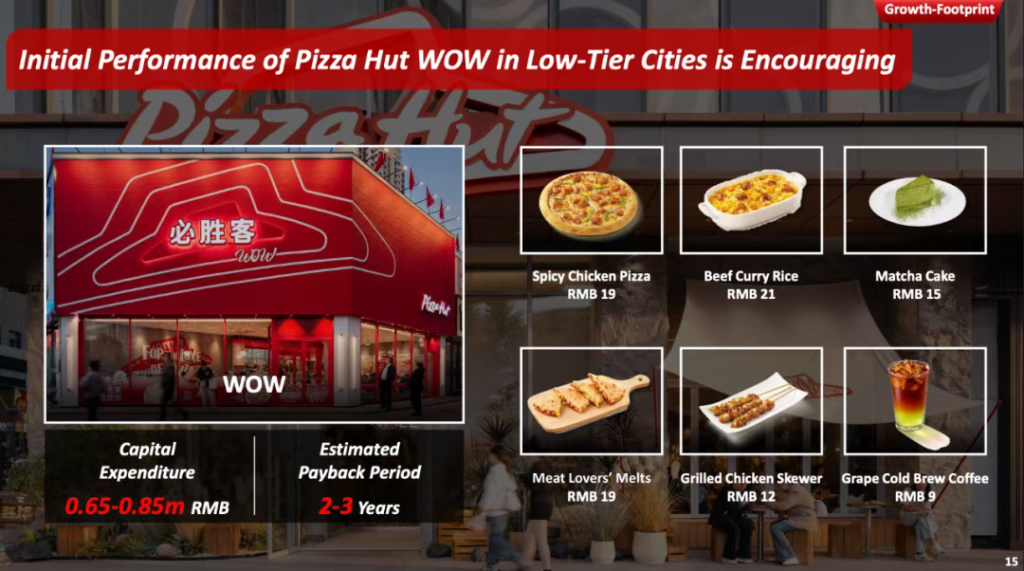 面向低线城市,必胜客则会利用去年推出的WOW模式拓展,主打质价比菜单、一人食场景。