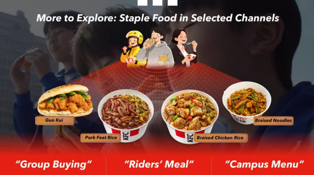 值得一提的是,曾在今年引发热议的肯德基黄焖鸡米饭,就属于试水新方向。汪涛透露,面向预算有限的消费者,如外卖骑手、网约车司机等都市蓝领和大学生,肯德基将推出平价“大碳水”主食产品。
