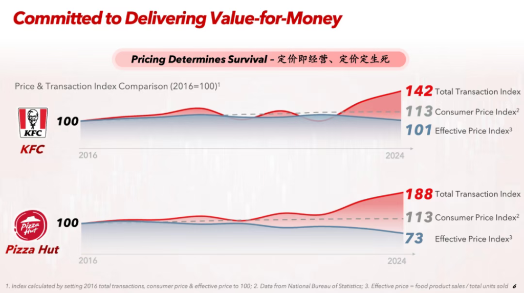 “对我们来说,定价不仅是一种策略,更是经营理念的核心:定价即经营、定价定生死。”屈翠容随后引用粤语俗语强调称,百胜中国要做“平(好价)、靓(高品质)、正(物超所值)”的产品。