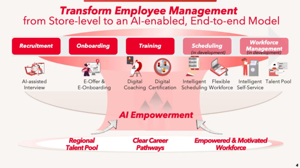 据百胜中国首席人力资源官丁时彦介绍,该公司正为餐厅经理构建五个集中式平台,涵盖新店开业、员工管理、客户支持中心、库存管理、设备维护,以帮助更高效地运营门店。