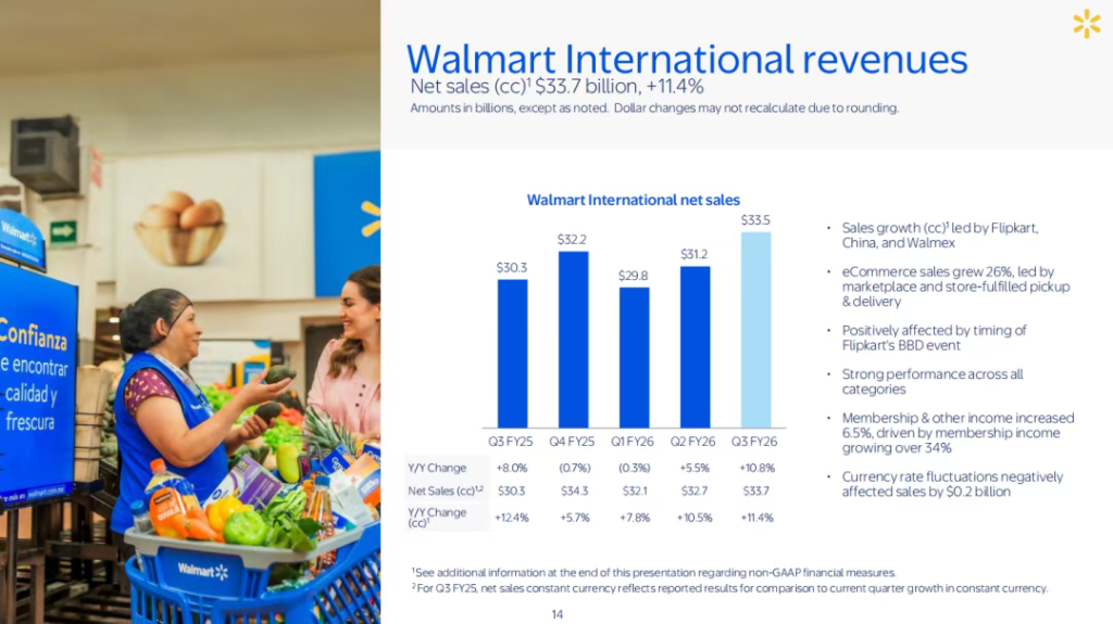 回到今晚发布的业绩,我们来关注下沃尔玛全球表现。