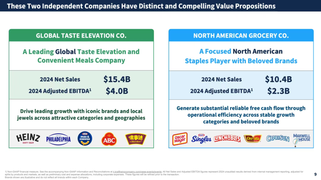 资料显示,全球风味提升公司2024年净销售额约为154亿美元,经调整后的息税折旧摊销前利润约为40亿美元。该公司将包括一系列标志性产品,拥有三个10亿美元级的品牌,例如亨氏、Philadelphia和Kraft Mac & Cheese,其净销售额约有75%来自酱料、调味品和香料。2024年,该公司的净销售额中约有20%来自新兴市场,约20%来自家外渠道。