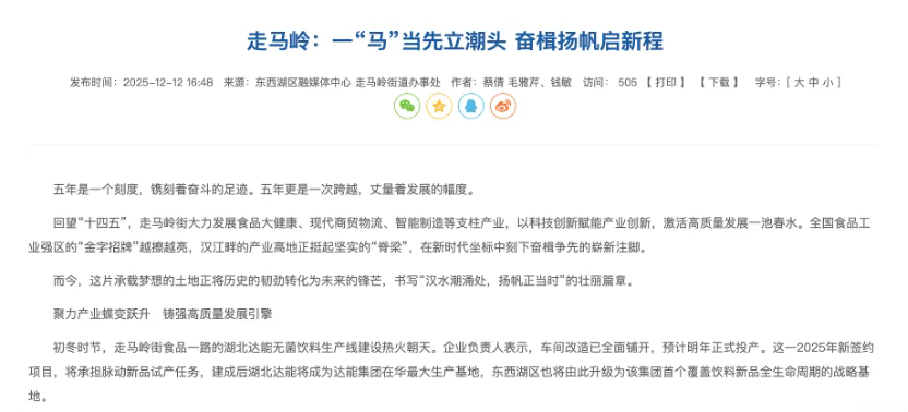 “这一2025年新签约项目,将承担脉动新品试产任务,建成后湖北达能将成为达能集团在华最大生产基地,东西湖区也将由此升级为该集团首个覆盖饮料新品全生命周期的战略基地。”