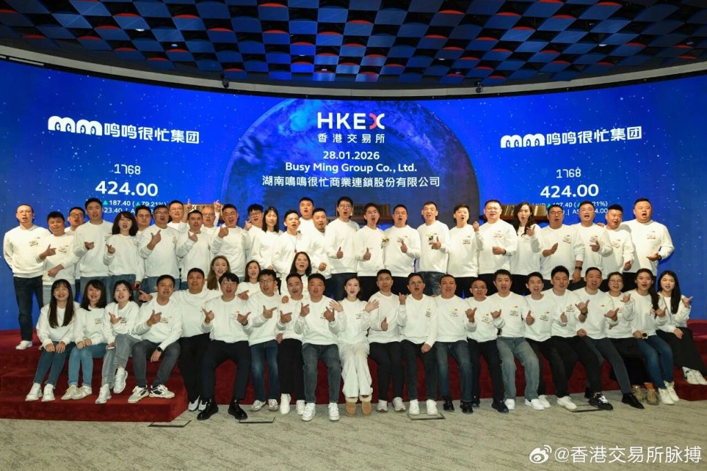 今天,鸣鸣很忙首日在港股挂牌,股价开报445港元,较定价236.6港元高88.1%,以每手100股计,一手帐面赚20840港元。鸣鸣很忙收盘涨69.1%,报400港元,成交33.12亿港元,一手赚16340港元,但孖展“顶头锤”的散户或要帐面损手约4万港元。鸣鸣很忙表示,未来将继续立足中国超大规模的消费市场,紧扣“消费者需求”这一主线,在门店网络、供应链能力、产品结构及食品安全体系持续投入,稳步提升服务与营运能力。(hket)