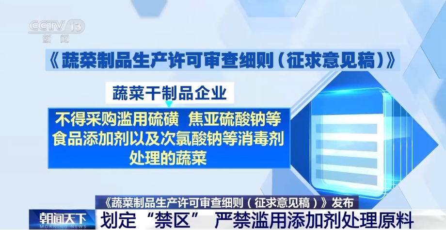 日前,据市场监管总局消息,新修订的《蔬菜制品生产许可审查细则》公开向社会征求意见。此次修订是自2006年版细则实施以来的首次全面更新,强调对生产源头风险管控。针对近年来蔬菜干制品中可能存在的滥用漂白剂、防腐剂等食品安全问题,征求意见稿明确,蔬菜干制品企业“不得采购滥用硫黄、焦亚硫酸钠等食品添加剂以及次氯酸钠等消毒剂处理的蔬菜”,杜绝不合格原料流入生产环节。针对酱腌菜行业长期存在的“外购咸坯”质量安全风险,征求意见稿明确,鼓励企业自建自控蔬菜种植和咸坯制作基地,优先从获得酱腌菜生产许可的生产企业采购蔬菜咸坯。严禁采购土坑腌制、卫生条件脏乱等不符合相关要求的小作坊和个人制作的蔬菜咸坯,从源头堵住安全隐患。(央视新闻)