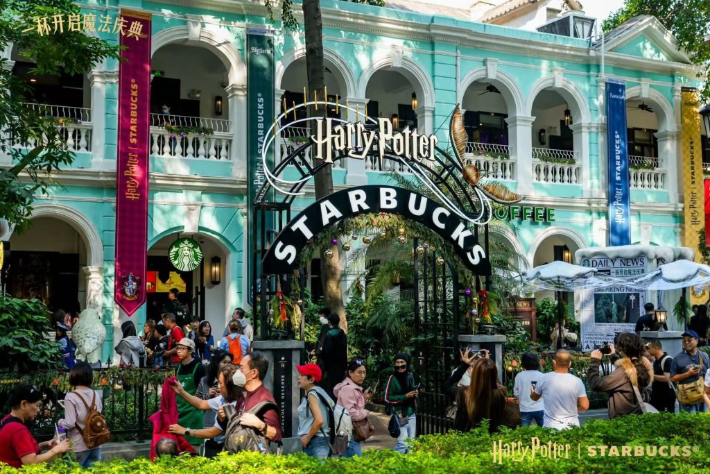 星巴克中国本季度在这方面的表现尤为突出。它与《哈利·波特》的深度联名,将38家门店变身为“霍格沃兹星巴克分校”,推出限定饮品和创意商品。一周内,19.4万根魔法杖被带回家,这一活动不仅创下销售记录,还强化了“第三空间”的概念——一个融合情怀和情绪价值的场所。在跨年夜,有1.3万名顾客参与了倒计时派对;同时,当日销售额创下历史最佳纪录,实现客流和业绩的双重突破。