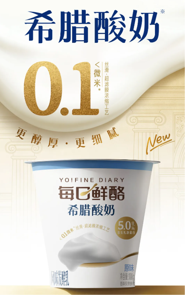 据蒙牛乳业服务号今日官微,每日鲜酪上新希腊酸奶。据称,该产品使用0.1微米丝滑超滤膜浓缩工艺,每100g含5g原生乳源蛋白并搭配S1希腊菌株,配方仅含生牛乳、白砂糖和乳酸菌。更加醇厚细腻和营养健康。(公司发布)