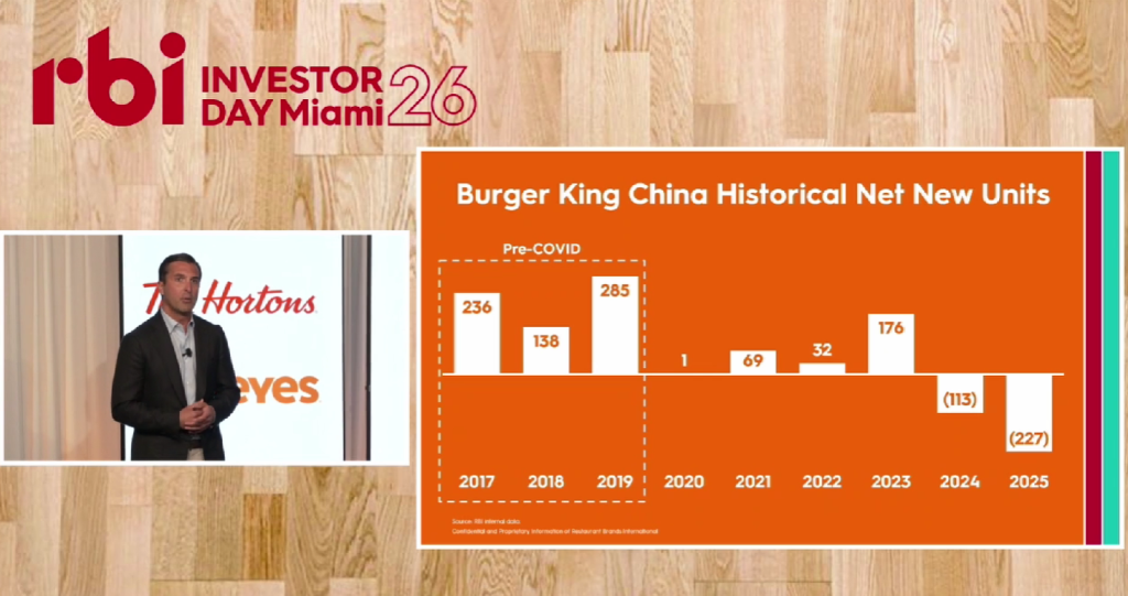 “我们的愿景是,到2028年,RBI将成为一家99%业务为特许经营的公司,实现5%以上的净门店增长率,拥有可预测的收益增长、稳健的投资级资产负债表,以及具又吸引力的两位数股东总回报率。”RBI集团首席执行官Josh Kobza在会上表示。