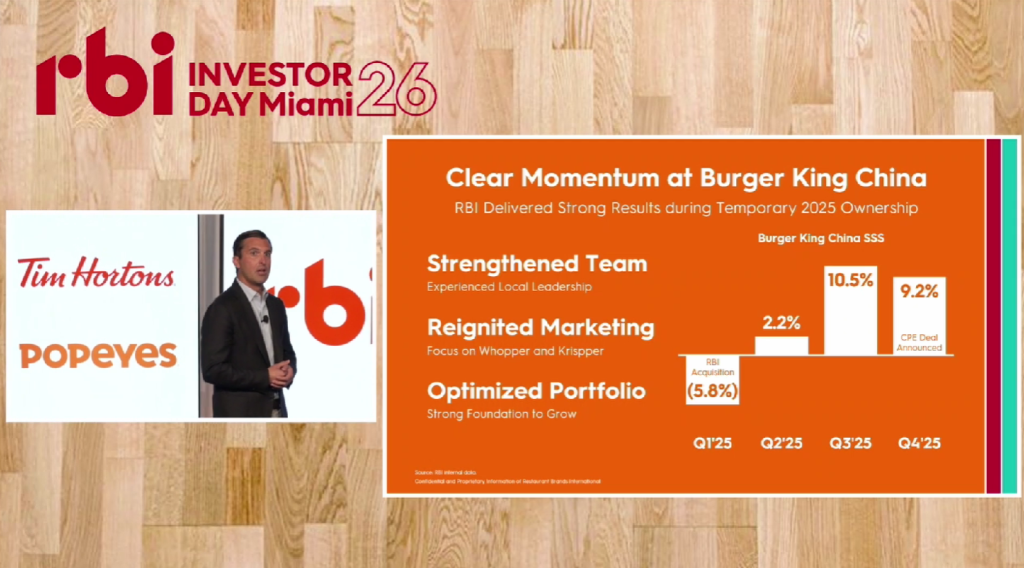 “鉴于其重要性,我们于2025年2月暂时接管了汉堡王中国业务。在接下来的9个月里,我们组建了一支杰出的本地领导团队,重振市场营销,优化餐厅组合,并在2025年下半年实现了10%的同店销售额增长。”他回顾道。