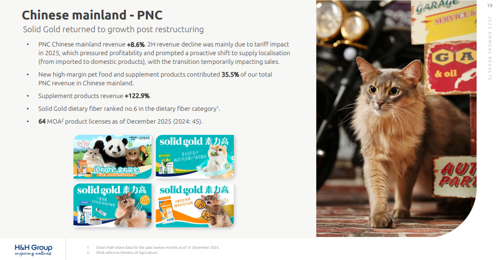 李凤婷表示,PNC中国业务去年增长放缓主要受关税影响,也对盈利造成一定压力。据悉,在中国内地,SolidGold素力高本地化供应战略预计于2026年底完成。