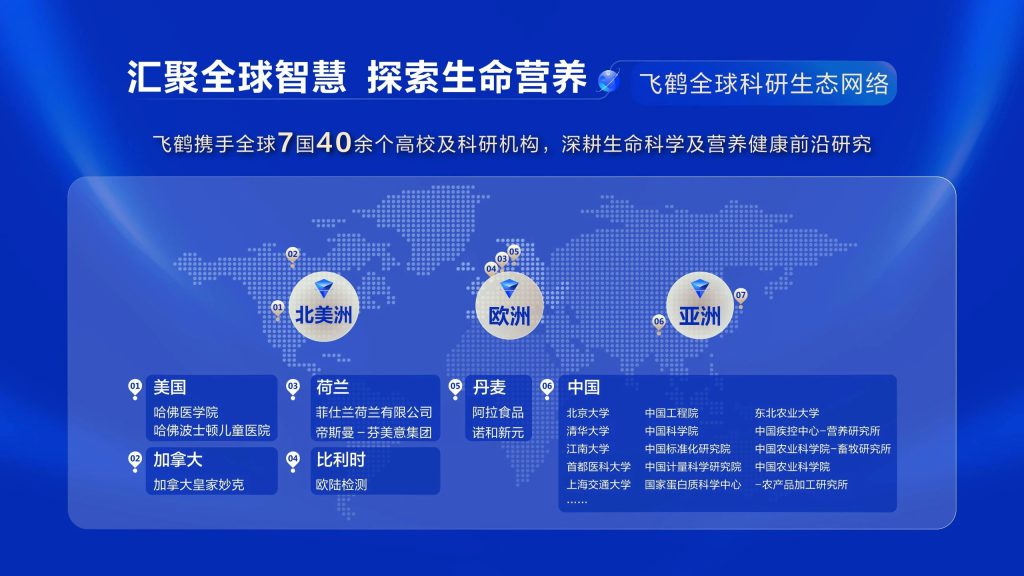 飞鹤的科研触角不断延伸,覆盖了从婴幼儿到全生命周期的营养研究。截至目前,飞鹤已携手全球7个国家40余所科研机构,包括哈佛医学院、北京大学、清华大学、中国科学院等,构建起覆盖基础研究、工艺创新、产品开发与临床实证的跨国产学研协同创新网络,通过“国内深耕+全球联动”的科研格局,持续筑牢科研根基、解锁乳源营养的价值与应用,旨在深耕生命早期研究及全年龄段人类健康事业。