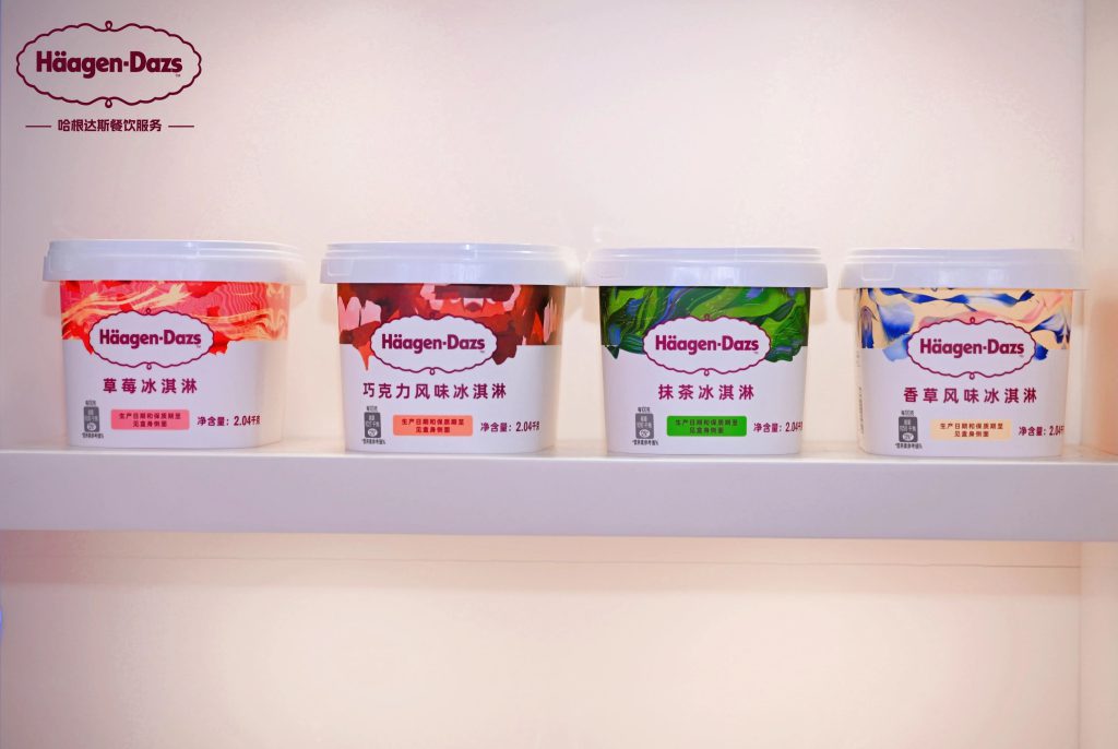 哈根达斯以12种核心口味和季节限定口味的桶装冰淇淋,与客户共创解决方案,为渠道客户打造差异化的口味加法。