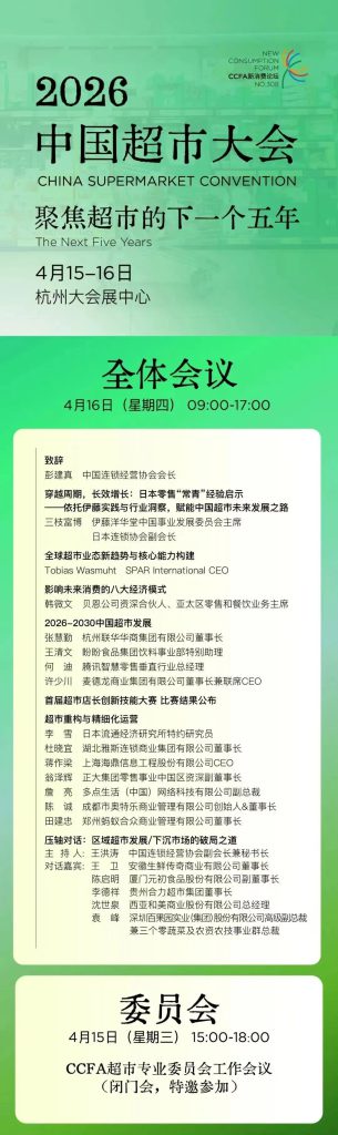 中国超市大会:面向中国超市行业的高规格、专业性年度盛会。本次大会以“聚焦超市的下一个5年”为主题,深度借鉴全球超市发展演进经验的同时,深入探讨中国超市未来五年的发展趋势与核心能力建设,助力超市业态在新消费环境下实现转型升级与可持续发展。